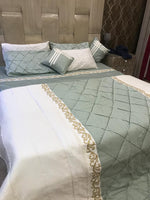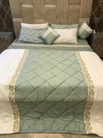 One comforter with embroidery patches and center pleeted 104/94 inches