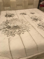 One comforter hand made flower size 104/94 inches filling 160gsm 2 pillow covers 2 cushion covers