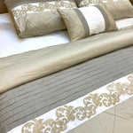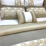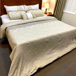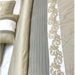 This 7-piece Comfortor set features delicate embroidery and pleats on top, combined with neutral colors for a sophisticated touch to your bedroom. Experience ultimate comfort and style with this set. Expertly handcrafted in a soft, neutral beige and grey color scheme, the Comfortor Sets 7 Pcs offers luxurious comfort and style for your bedroom. Each set includes 7 pieces, providing a complete bedding solution for your space. Elevate your sleep experience with this exquisite, handmade set.