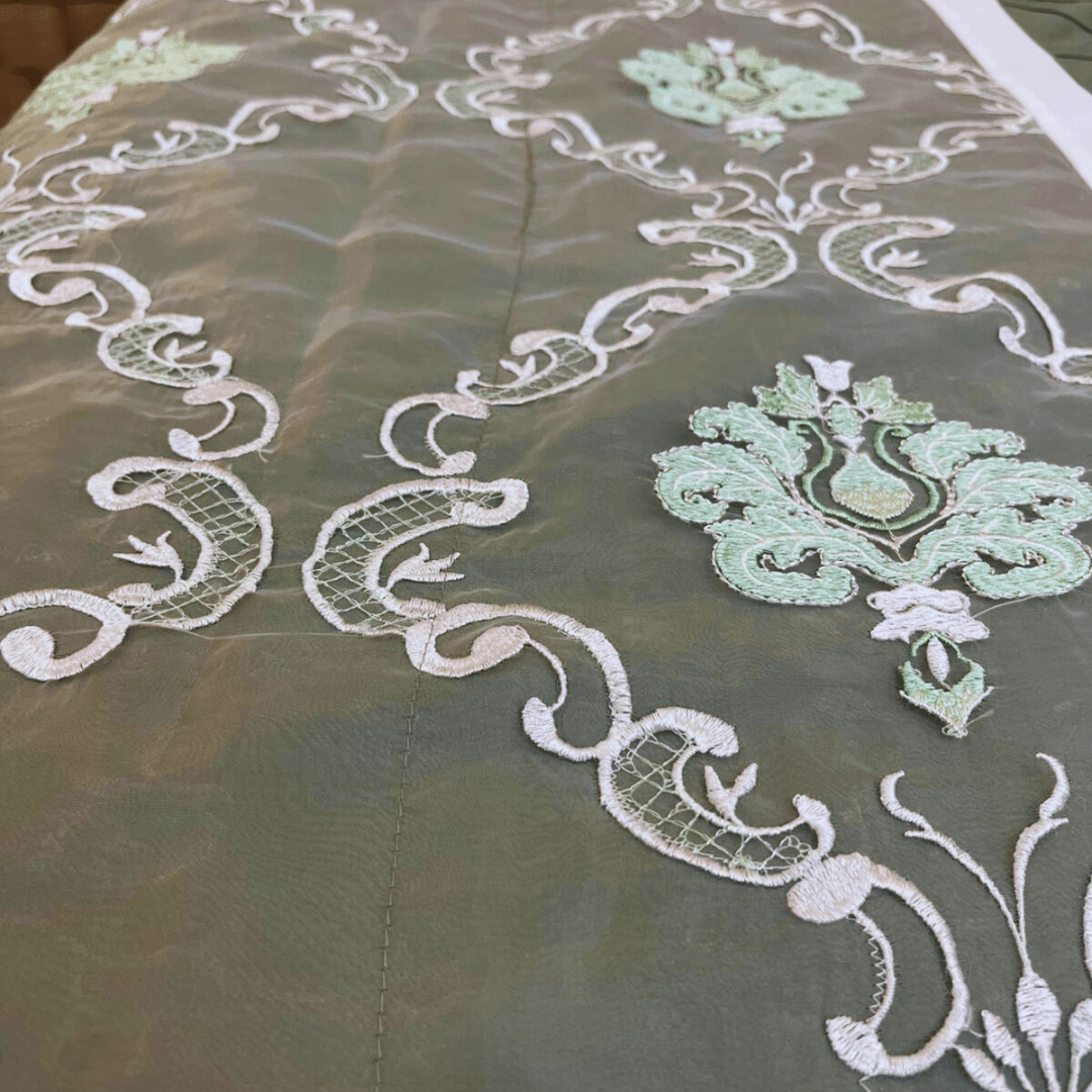 Experience refined elegance with this 9-piece luxury comforter set in a soothing soft green hue. Expertly crafted, it features delicate lace patches that add a sophisticated texture and visual interest. Designed for both comfort and style, this set elevates your bedroom ambiance while providing a cozy, restful experience. Ideal for those seeking a blend of classic charm and modern luxury.