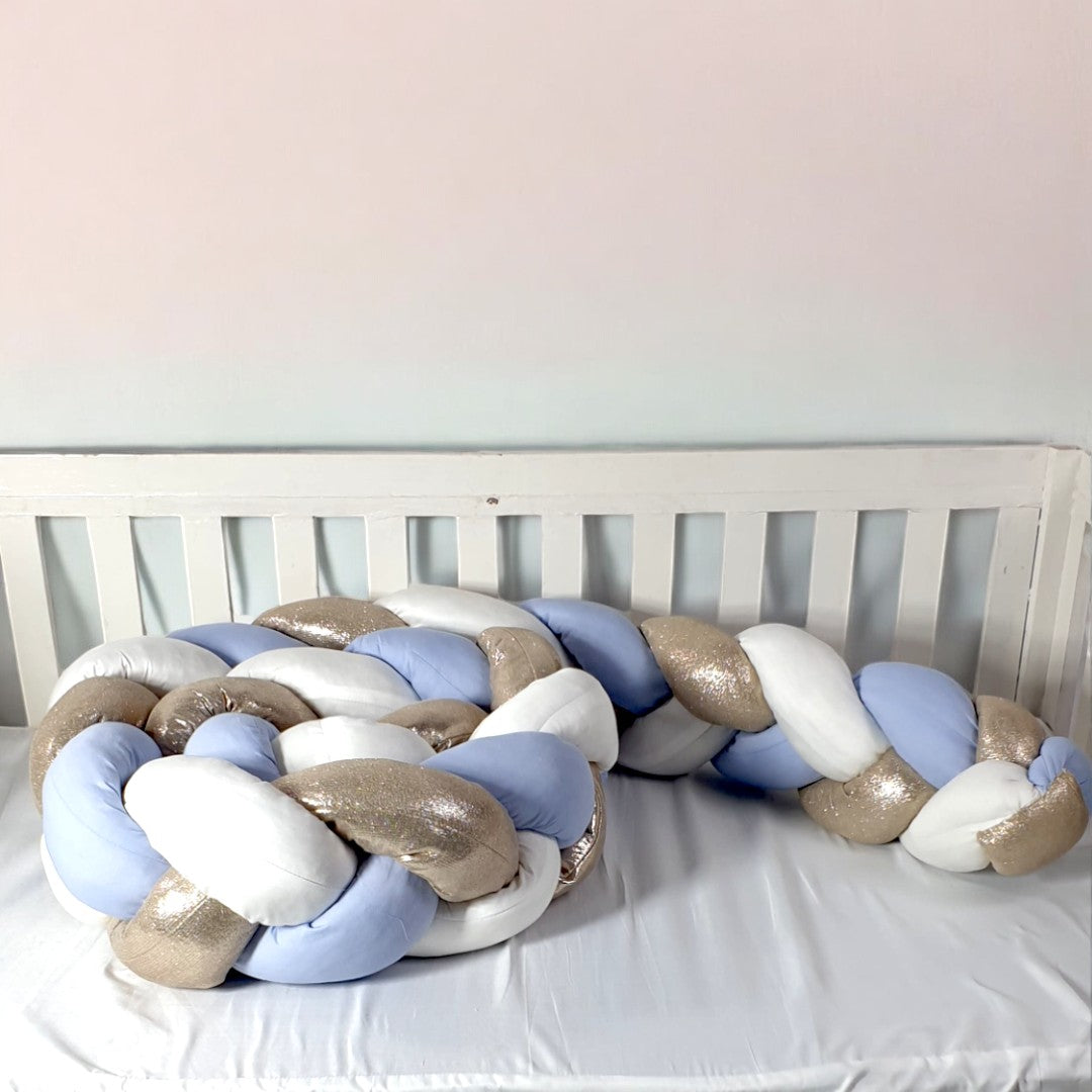 This 8-foot-long baby braid is perfect for use as a bumper in a baby cot. Crafted with safety in mind, it provides a soft and secure barrier for your little one. Made with high-quality materials, the Baby Braid is durable and reliable for long-term use.