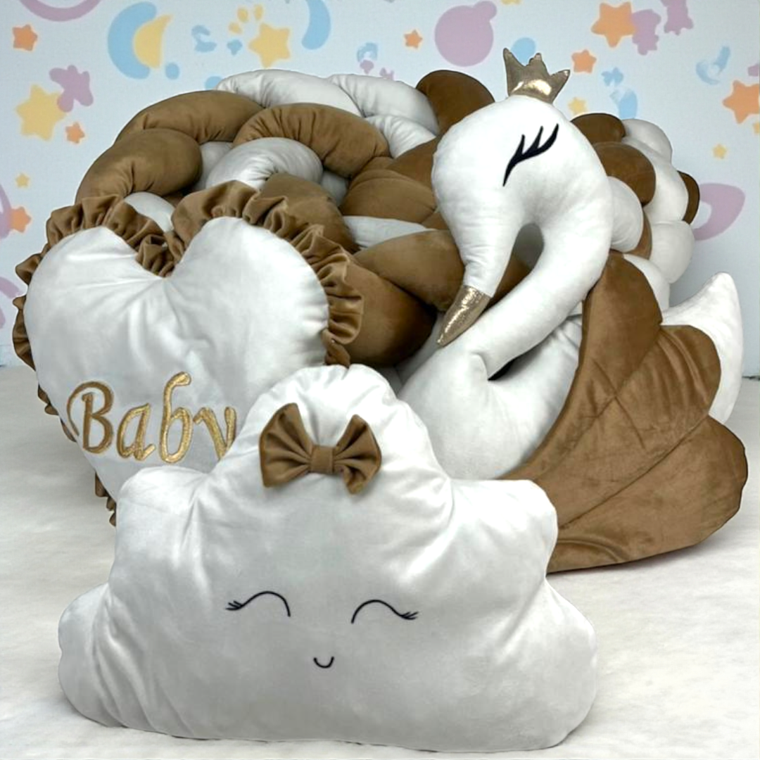 Provide a safe and cozy environment for your baby with our Baby Cushions & Braids set. Designed to fit perfectly in a cot or any desired space, these cushions offer gentle support and protection, helping to prevent bumps and drafts. Crafted with soft, breathable materials, they ensure your baby stays comfortable while promoting a secure sleep area. Ideal for parents seeking both functionality and comfort, this set enhances any nursery setup with its practical design and expert quality.