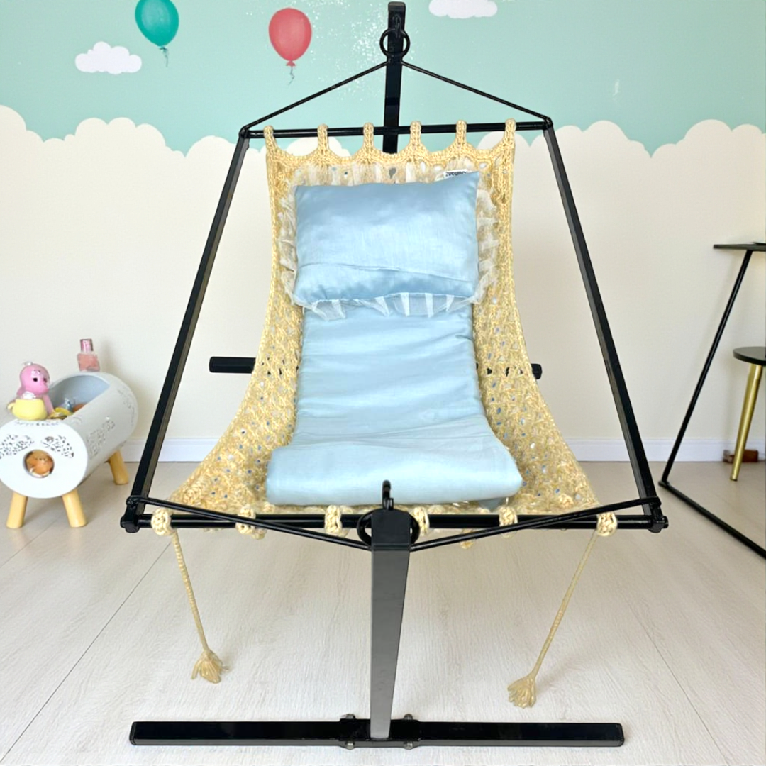 This Baby Johla offers a modern reinterpretation of the traditional design, promoting restful sleep and supporting healthy spinal alignment for infants. Crafted with care, it provides a soothing and secure environment that enhances comfort and encourages proper posture during sleep. Ideal for parents seeking a blend of heritage and contemporary benefits for their baby's well-being.