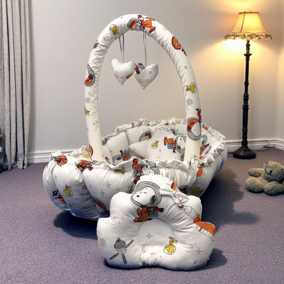 Experience the ultimate comfort for your baby with our New Baby Snuggle Bed. Made from cotton satin, our bed is designed for babies ages 0 to 8 months. It includes 2 pillows for added support and a mesh for proper air ventilation. Give your little one a peaceful and cozy sleep.