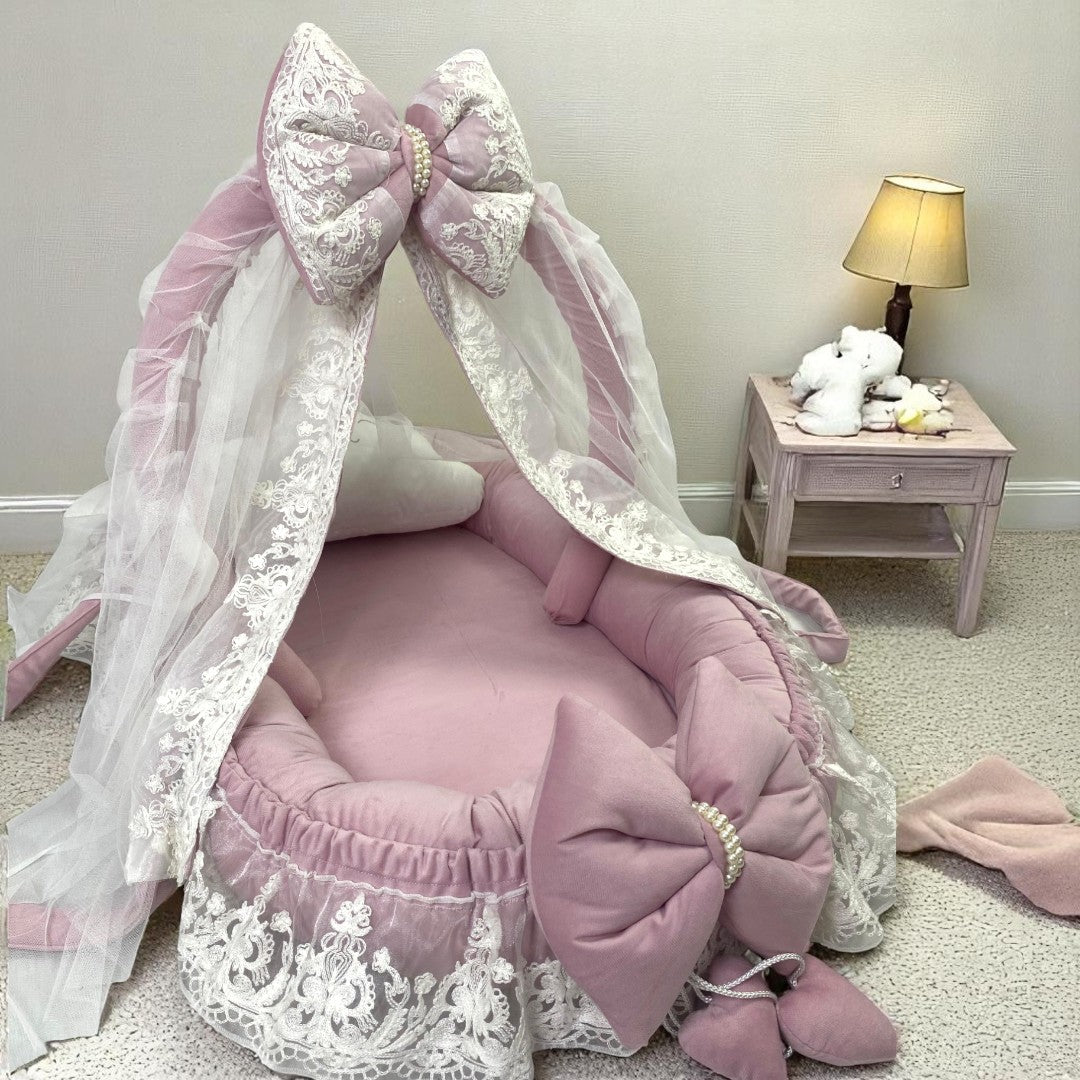 Introducing the Baby Bassinet, perfect for newborns up to 4 months. Made with soft velvet material for ultimate comfort. Expertly designed to provide a peaceful sleeping experience, perfect for newborns. Designed with newborns in mind, ensuring a safe and cozy environment.