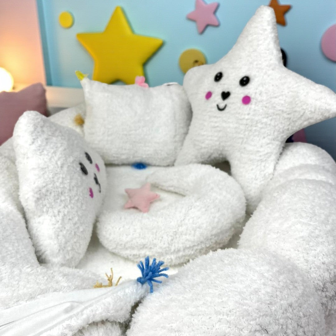 This white baby bassinet combines practicality with comfort, featuring four soft pillows to provide a cozy and secure resting space for your newborn. Designed with expert care, it ensures proper support and safety, making it an ideal choice for parents seeking a reliable and gentle sleeping environment for their baby. Its clean white finish adds a timeless, elegant touch to any nursery.