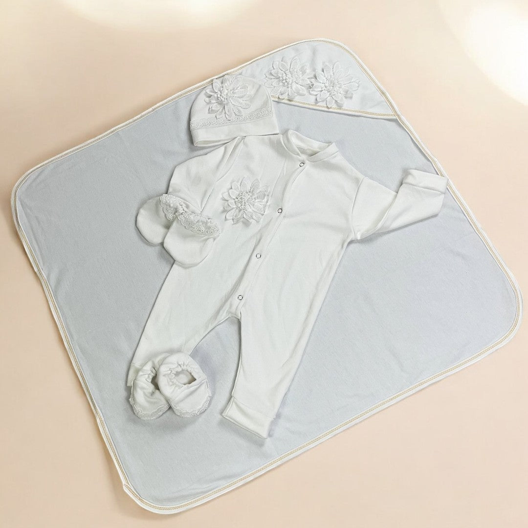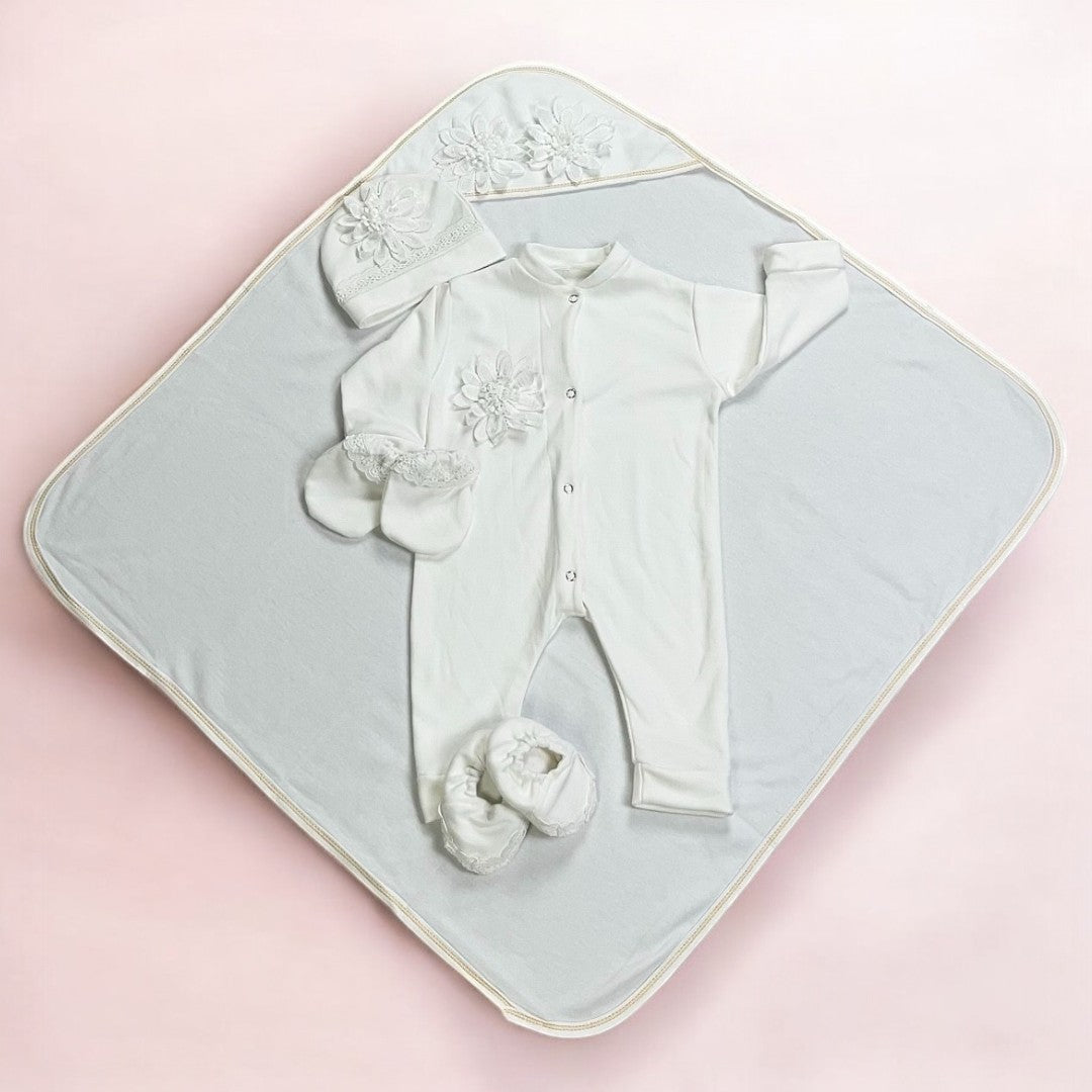 Introducing our 5 piece Baby Romper Set, perfect for newborns up to 3 months during the spring season. Each piece is embroidered for a touch of elegance. Keep your little one comfortable and stylish with this set.