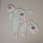 Expertly crafted 4-piece summer romper set designed for infants aged 0-3 months. Made with lightweight, breathable fabric ideal for warm weather comfort. Versatile enough for everyday wear or special occasions. Complete ensemble provides essential wardrobe options for your newborn's first months.