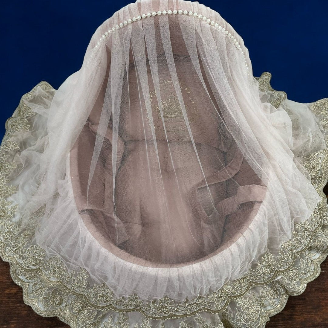 Introducing our expertly designed Baby Snuggle Bed. With a convenient handle and mosquito mesh net, this bed guarantees safety for newborns up to 9 months. Keep your little one snug and comfortable with the included pillow. Created for parents' peace of mind.