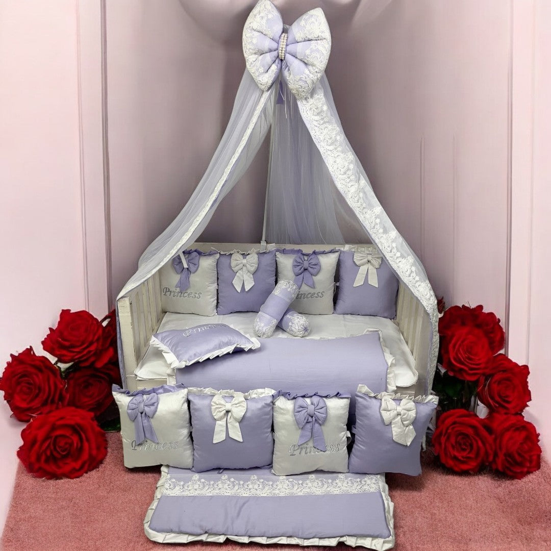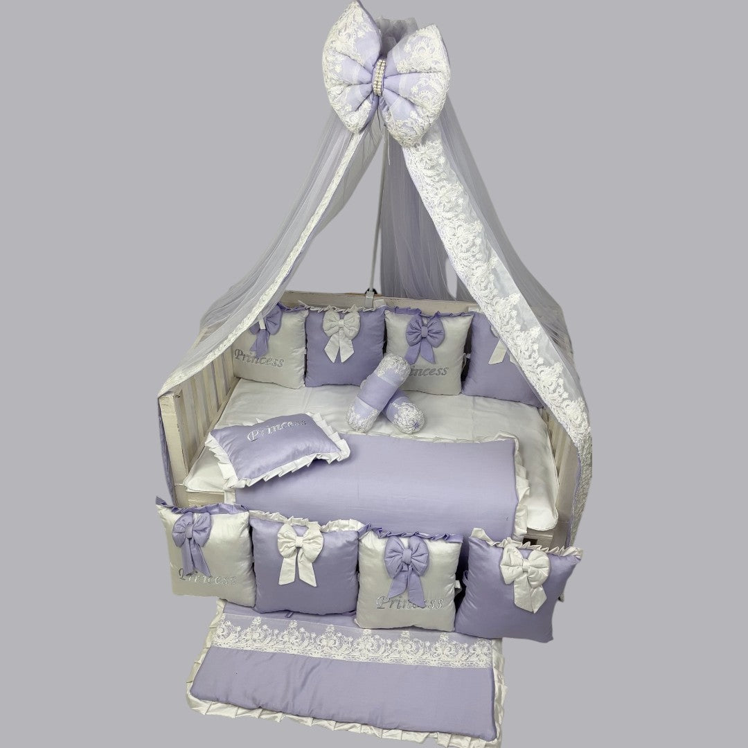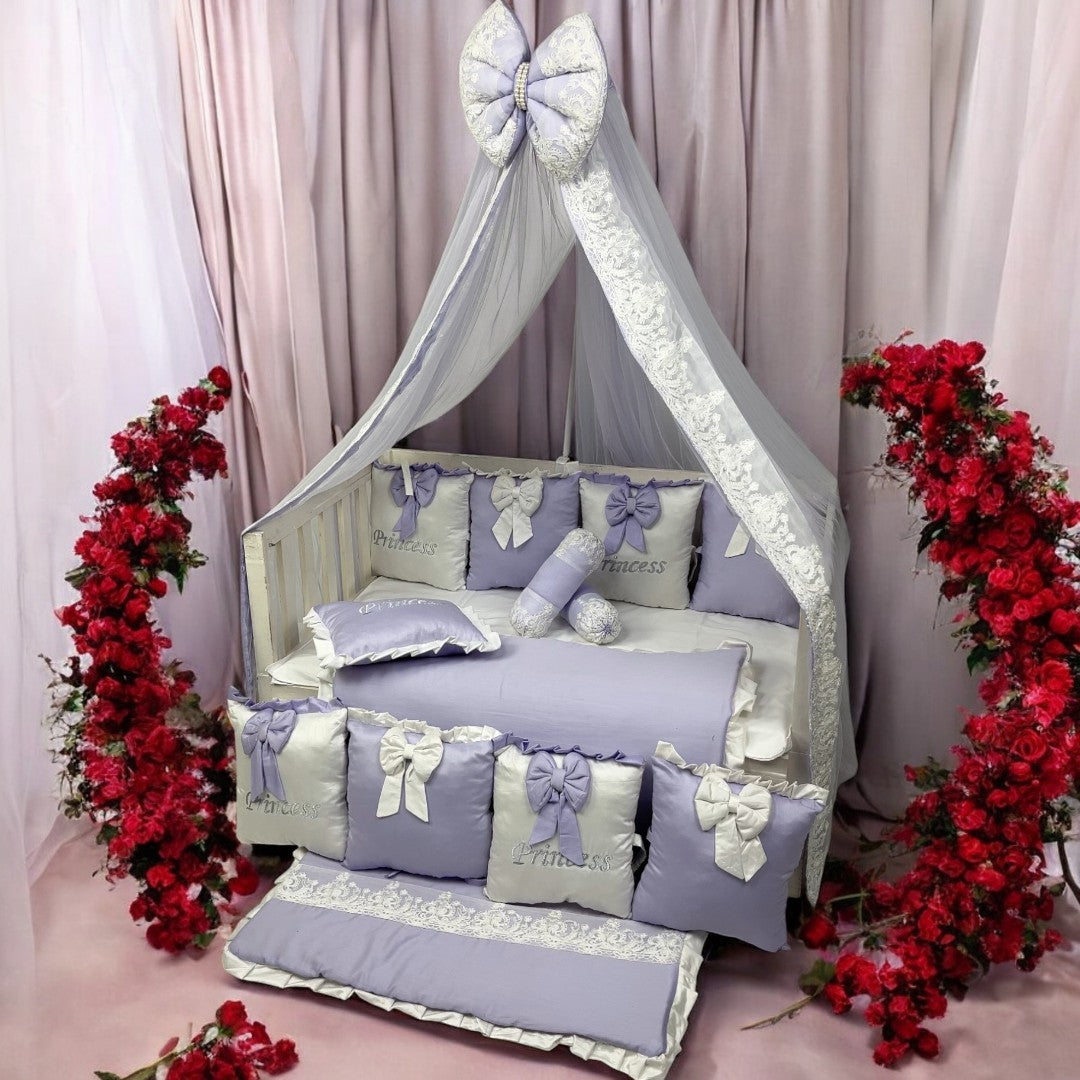 This 12-piece baby cot set includes everything you need to create a cozy and comfortable environment for your little one. Made without a cot, this set includes essential items such as a fitted sheet, quilt, and bumper to ensure your baby sleeps soundly. Perfect for new parents, this set is a must-have for any nursery.
