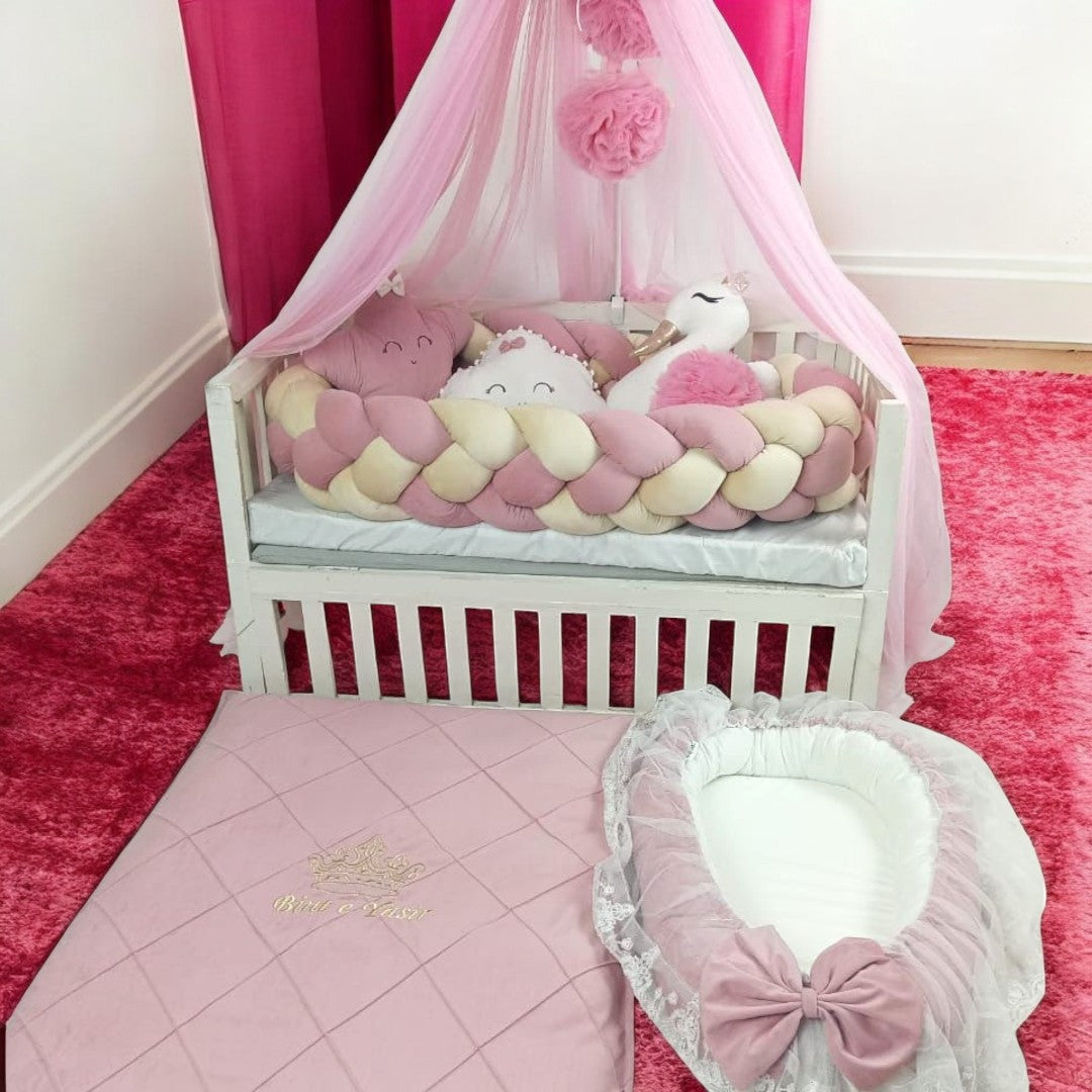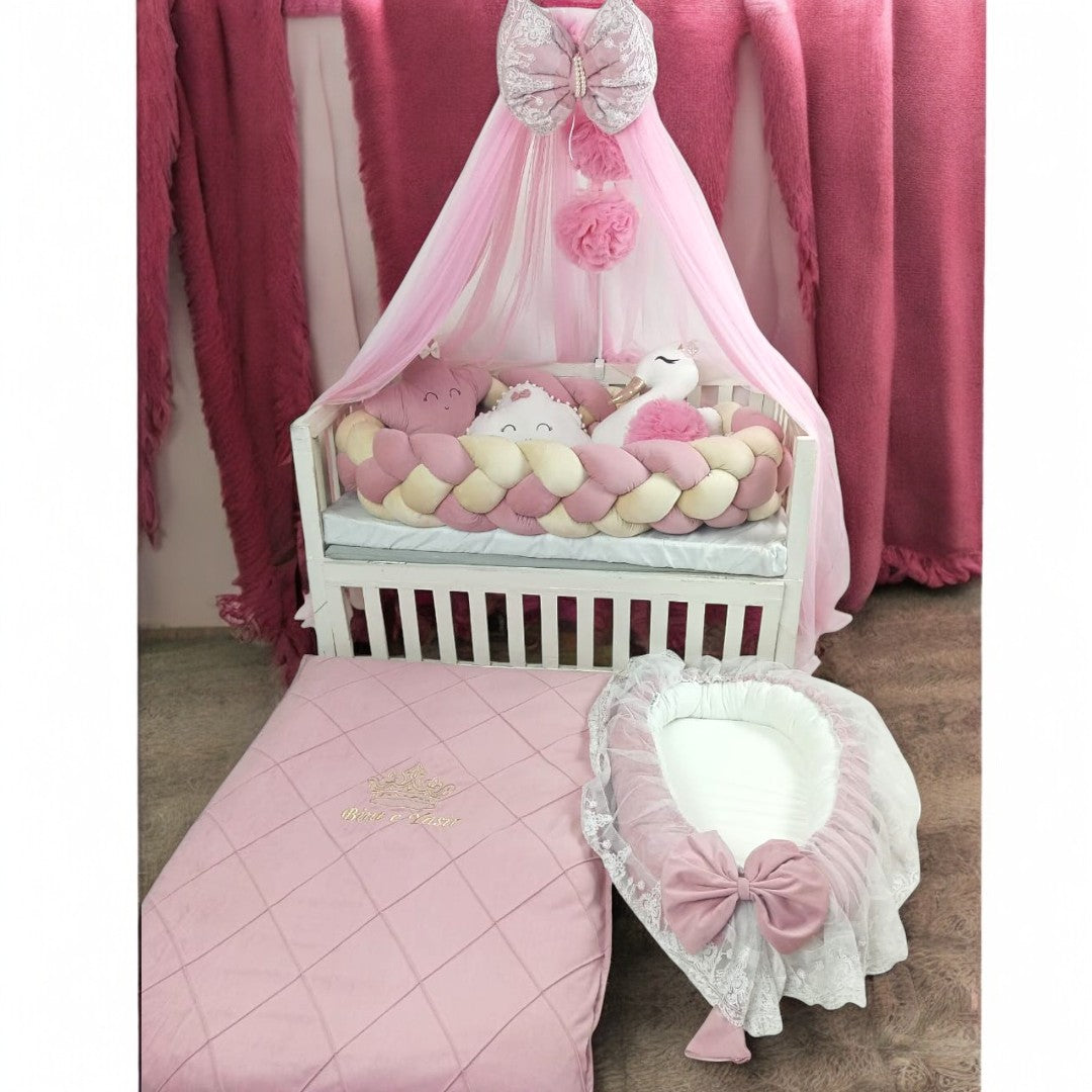 Looking for the perfect bedding set for your newborn's crib? Look no further! Our 9 piece cot set is the ultimate addition to your baby cot. With all the essential pieces, it's perfect for a complete and comfortable nursery. Order now and add our baby cot for a full setup. Limited Stock!