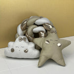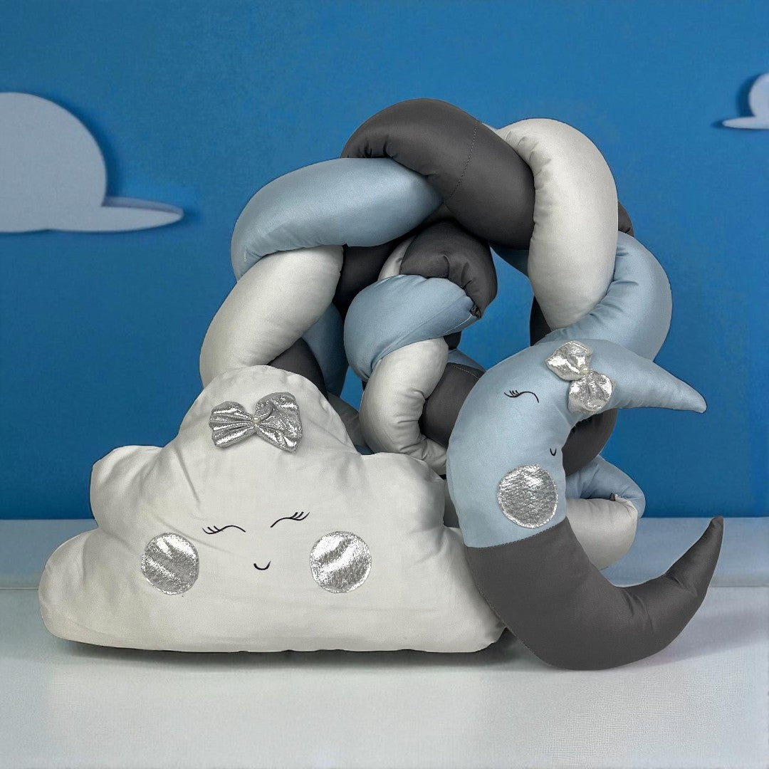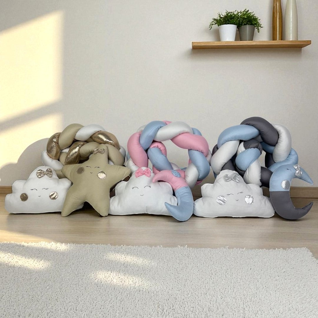 This set includes three cushions—two standard and one braided—designed to enhance sofa arrangements or provide comfortable support in a baby cot. Crafted for both style and function, these cushions offer versatile use, ensuring optimal comfort and aesthetic appeal in your living space or nursery.