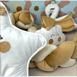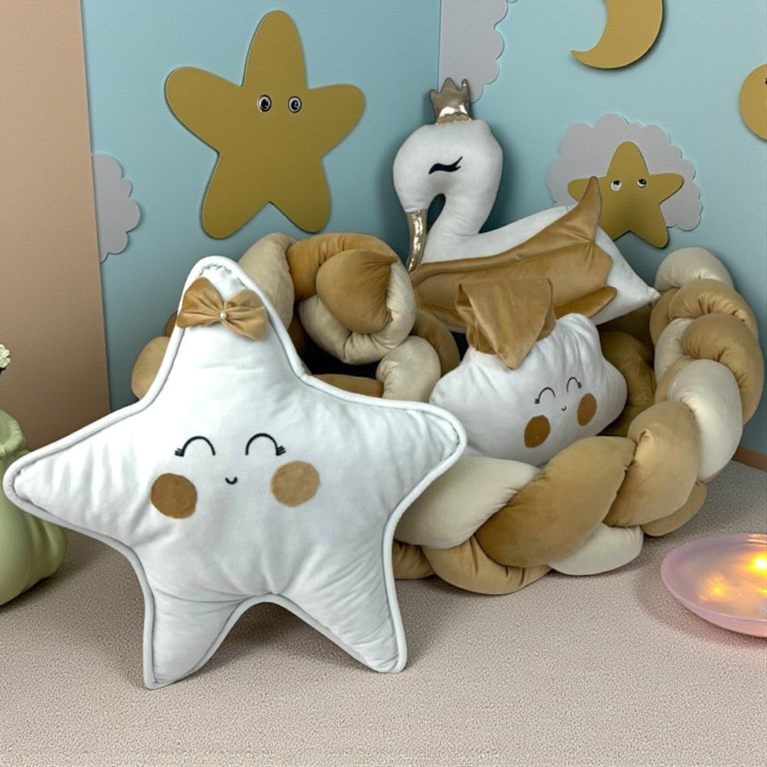 This set includes four expertly crafted cushions and a braided bumper designed for baby cots or home use. The cushions provide comfortable support while the braid adds a protective barrier, enhancing safety and style. Made with quality materials, this set combines functionality and comfort to create a cozy environment for your baby. Ideal for both nursery and home settings.