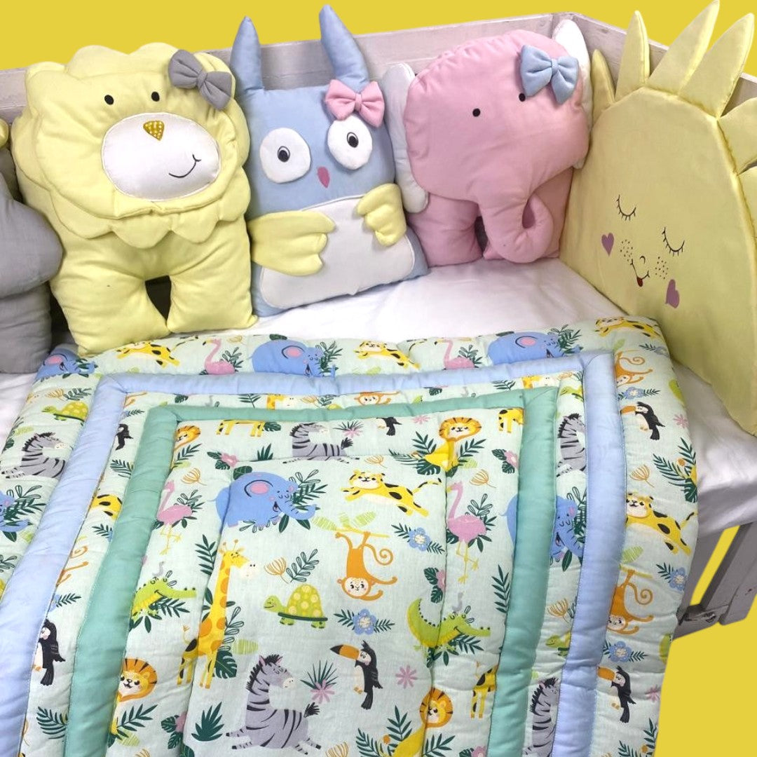 Introducing our 8 piece baby cot bedding set, perfect for creating a cozy and comfortable sleeping environment for your little one. Made with high-quality materials, this set includes everything you need for a complete bedding solution. Give your baby the best with our expertly crafted bedding set. Cotton Material