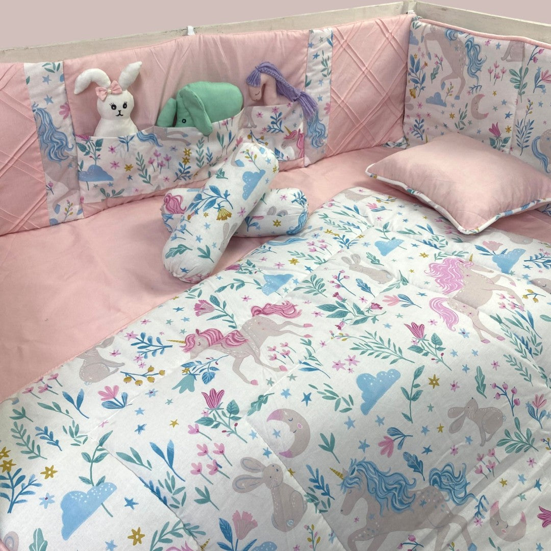 Introducing our 8 piece baby cot bedding set, perfect for creating a cozy and comfortable sleeping environment for your little one. Made with high-quality materials, this set includes everything you need for a complete bedding solution. Give your baby the best with our expertly crafted bedding set. Cotton Material