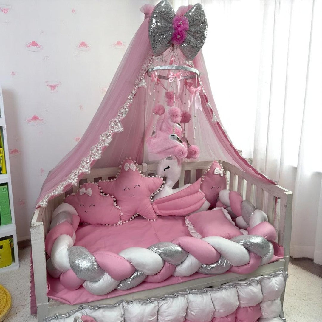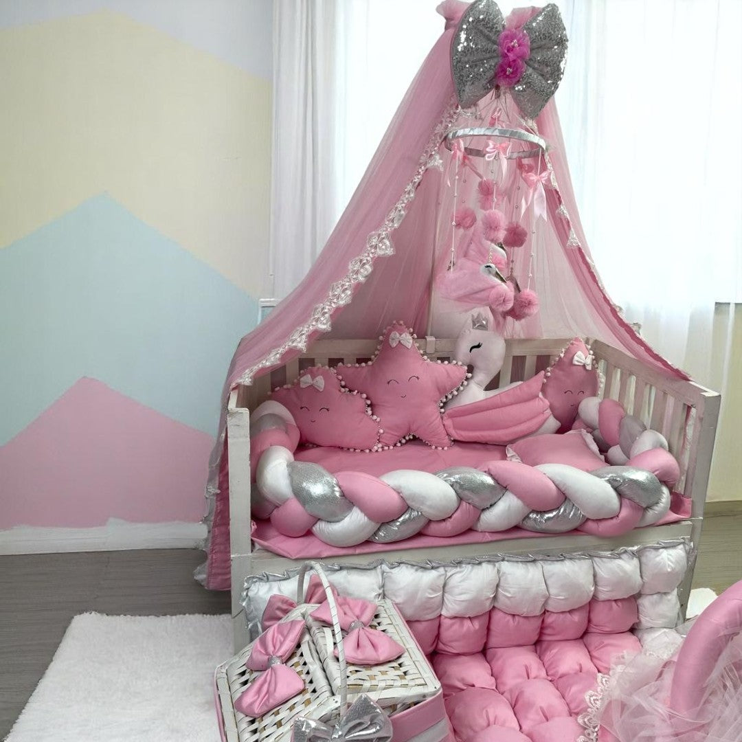 Our Baby Cot Bedding Set is the complete package, expertly crafted for your newborn. With 12 pieces, including a baby bassinet and carry nest, your little one will be snug and comfortable all night long. Trust in our expertise to provide the perfect bedding for your precious joy bundle.Age Group 0 to 6 Months for baby bassinet and carry nest.