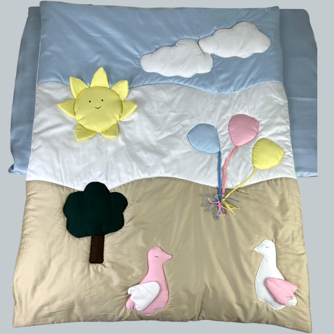 Elevate your nursery with this comprehensive 8-piece baby cot bedding set featuring delicate applique work. Designed for comfort and style, each piece is crafted to create a safe, cozy sleeping environment for your little one. The coordinated set provides everything needed for a perfectly appointed cot, combining functionality with charming decorative elements that will complement any nursery décor.