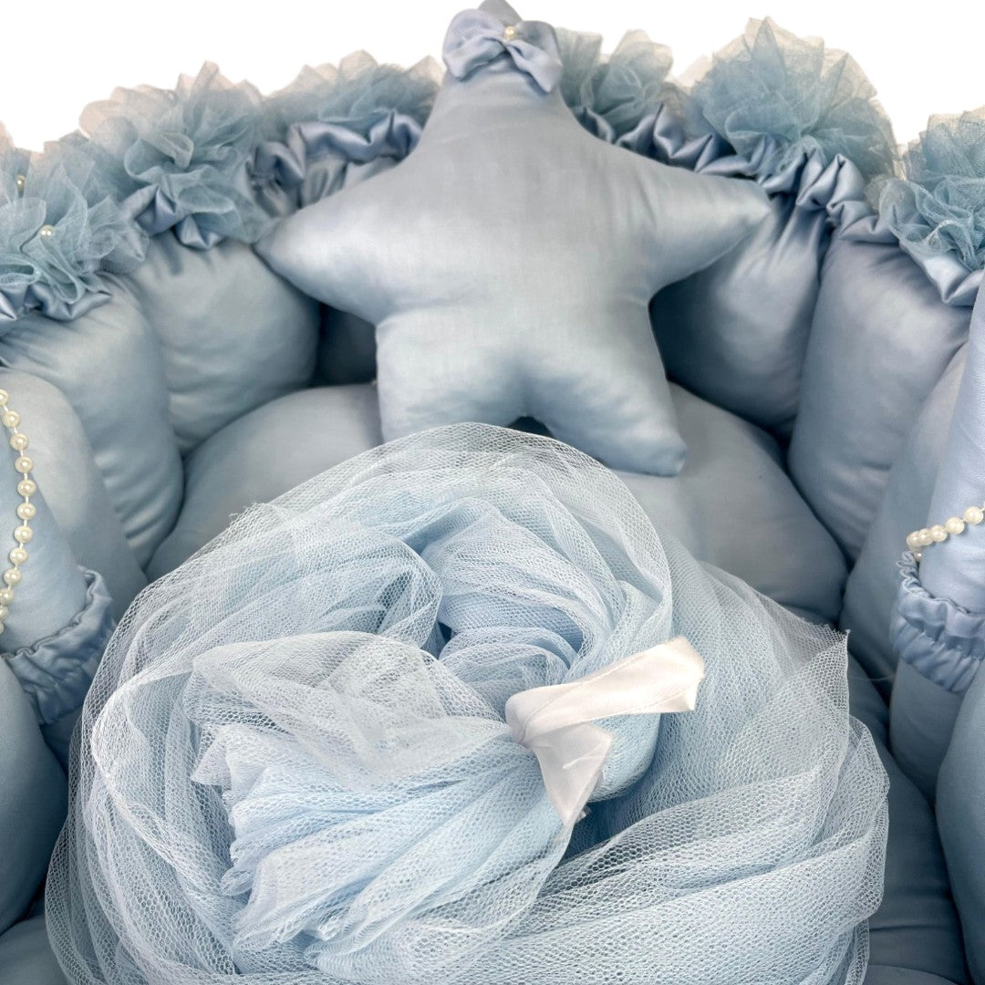 Designed specifically for newborns, this premium Baby Snuggle Bed features a soft cotton satin construction that's gentle on delicate skin. The thoughtfully assembled design includes an integrated pillow for proper head support and protective mesh netting to ensure optimal airflow and visibility while keeping your infant secure. An essential addition to your nursery that combines safety, comfort, and functionality for your precious little one.