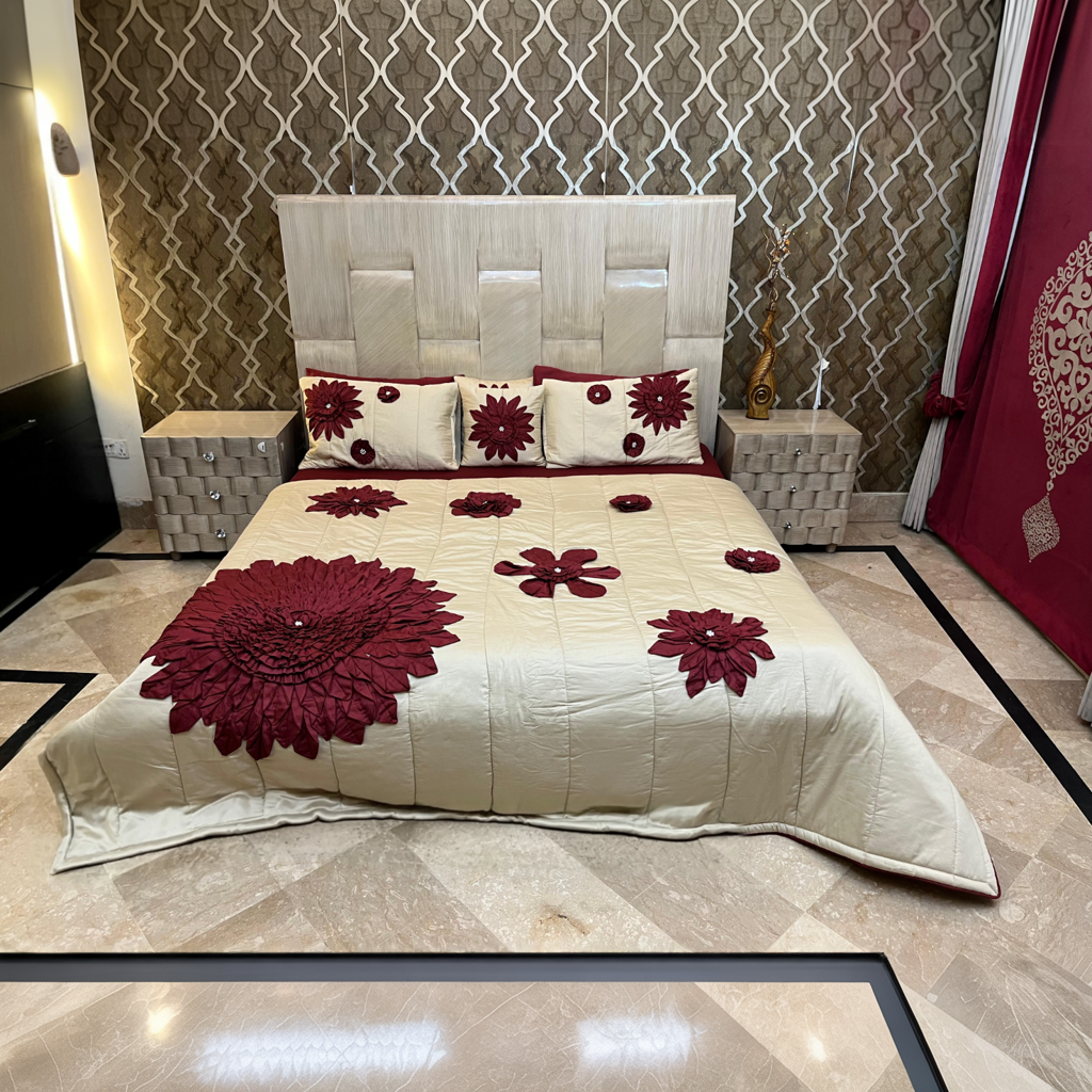 Set Inlcudes 4 Pillow Covers, 2 Cushion Cover , 1 King size bed sheet104/98 inches ,1 Comfortor 106/100