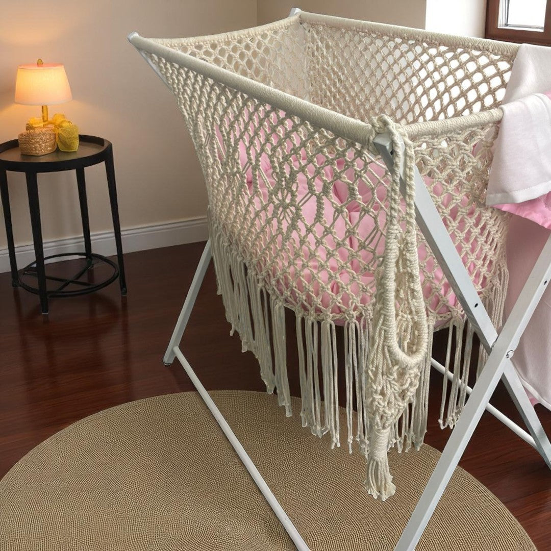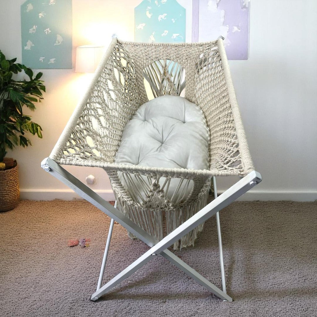 This Hand Knot Baby Crib Bed is designed with a soft, inner filling made of fiber balls for a comfortable and supportive sleeping surface for your baby. The hand-knotted design provides a unique and stylish touch to your nursery. Give your little one a restful and cozy night's sleep with this high-quality crib bed.