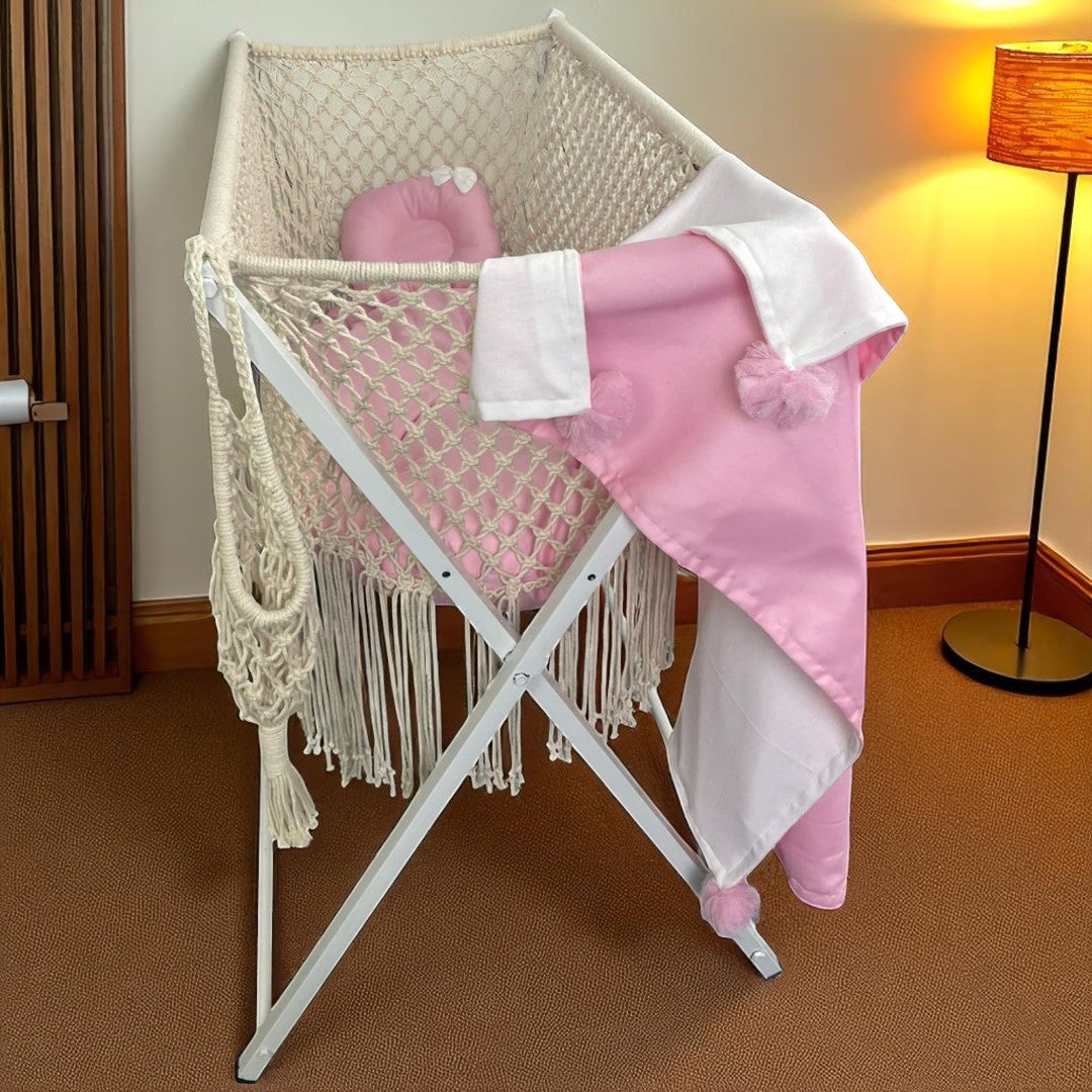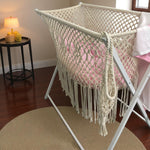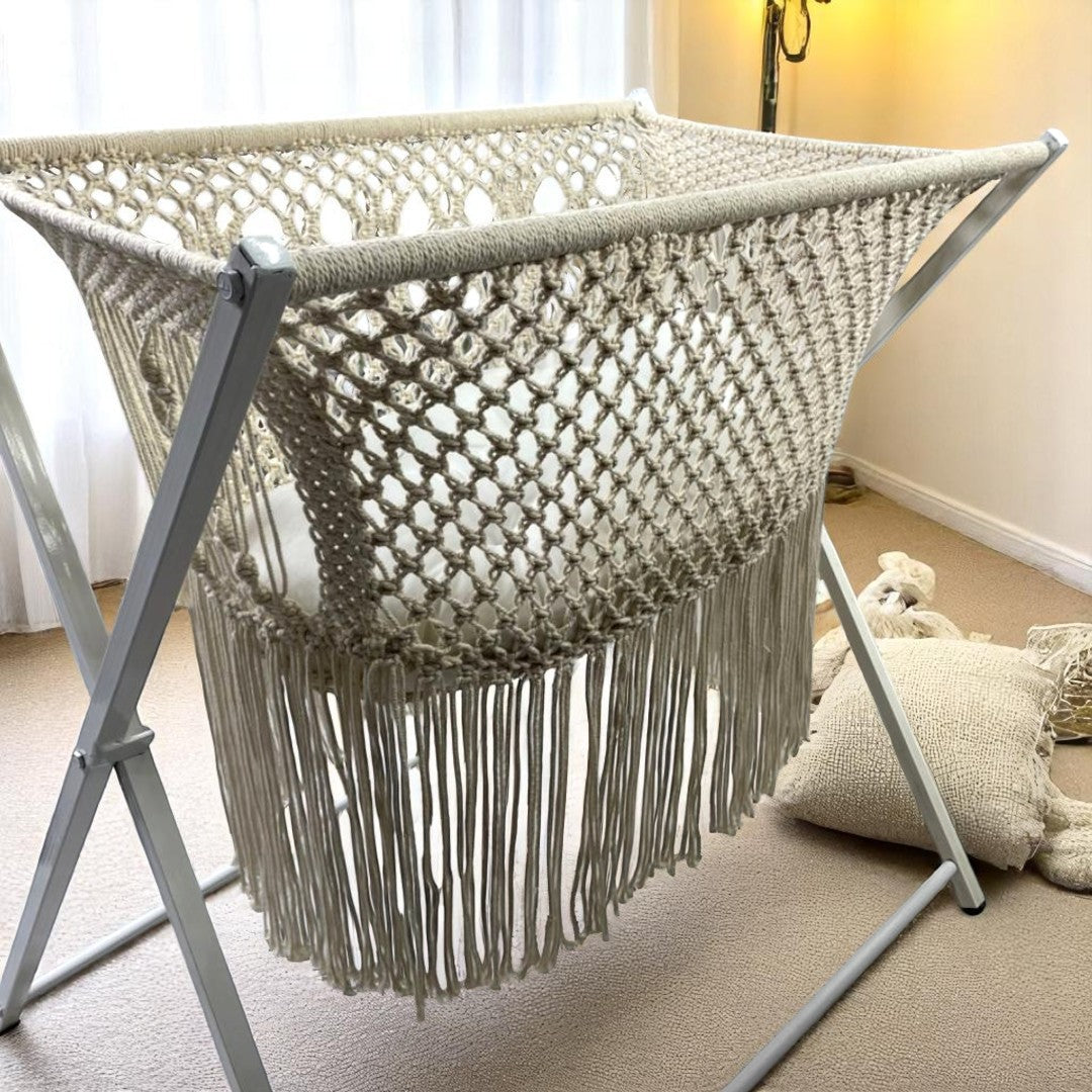 Expertly crafted with a custom-made iron rod stand, the Hand Knot Baby Crib Bed offers optimal support for your little one's peaceful slumber. Made to order with a 15-day production period, this crib combines superior quality with thoughtful design.