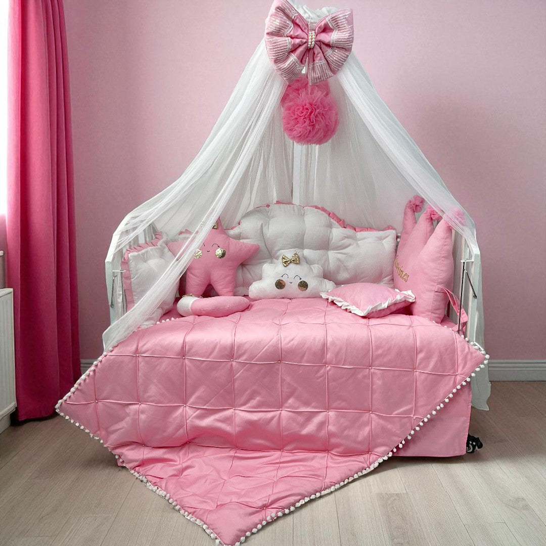 This 10-piece Baby Cot Bedding set combines comfort and practicality for your little one’s crib. Crafted from soft, breathable materials, the set ensures a cozy sleeping environment while being gentle on delicate skin. The complete collection includes fitted sheets, pillowcases, blankets, and bumpers designed to provide a secure and snug fit. Easy to clean and durable, it supports parents in maintaining a hygienic and comfortable sleep space for their baby. Ideal for creating a safe, soothing nursery atmosphere tailored to infant needs.