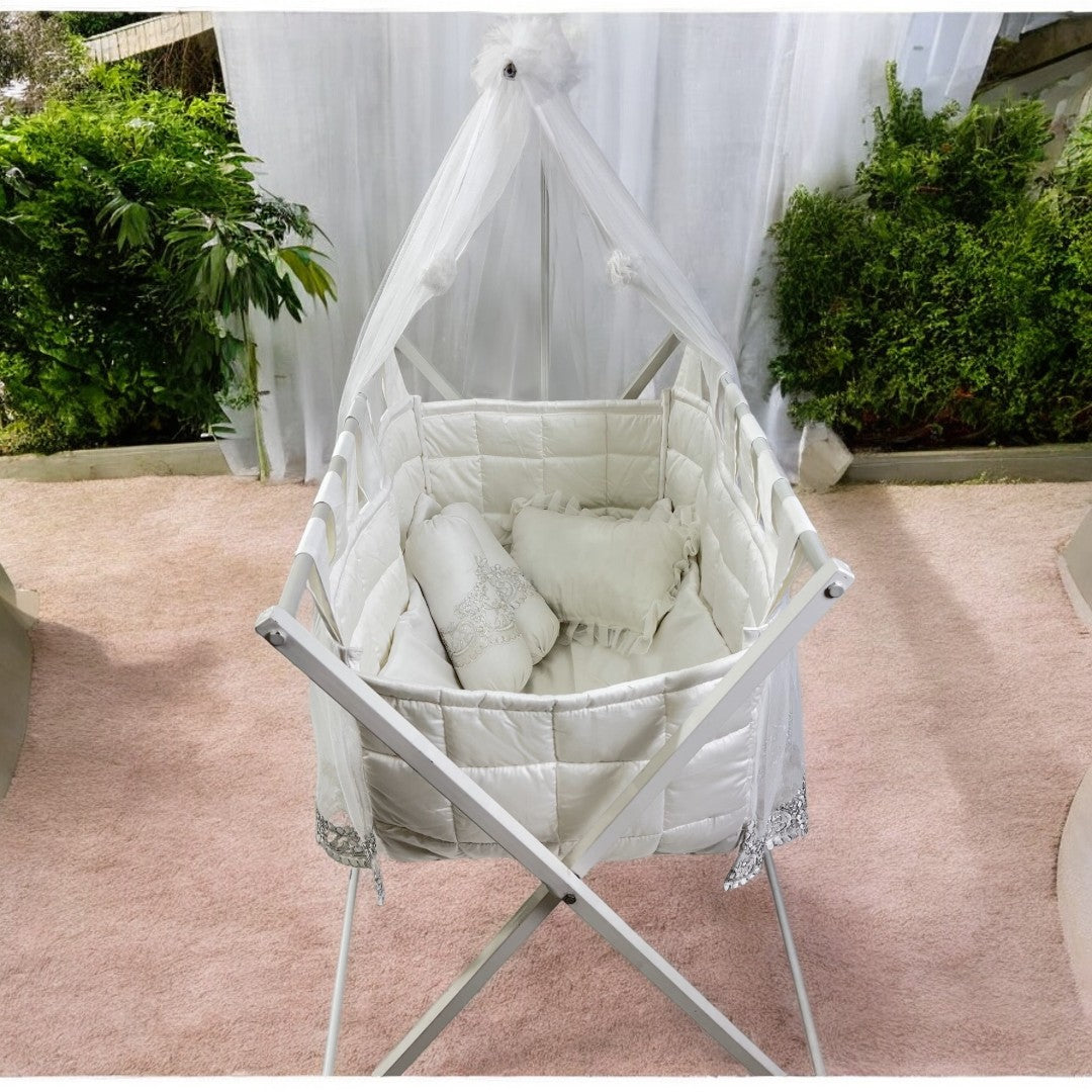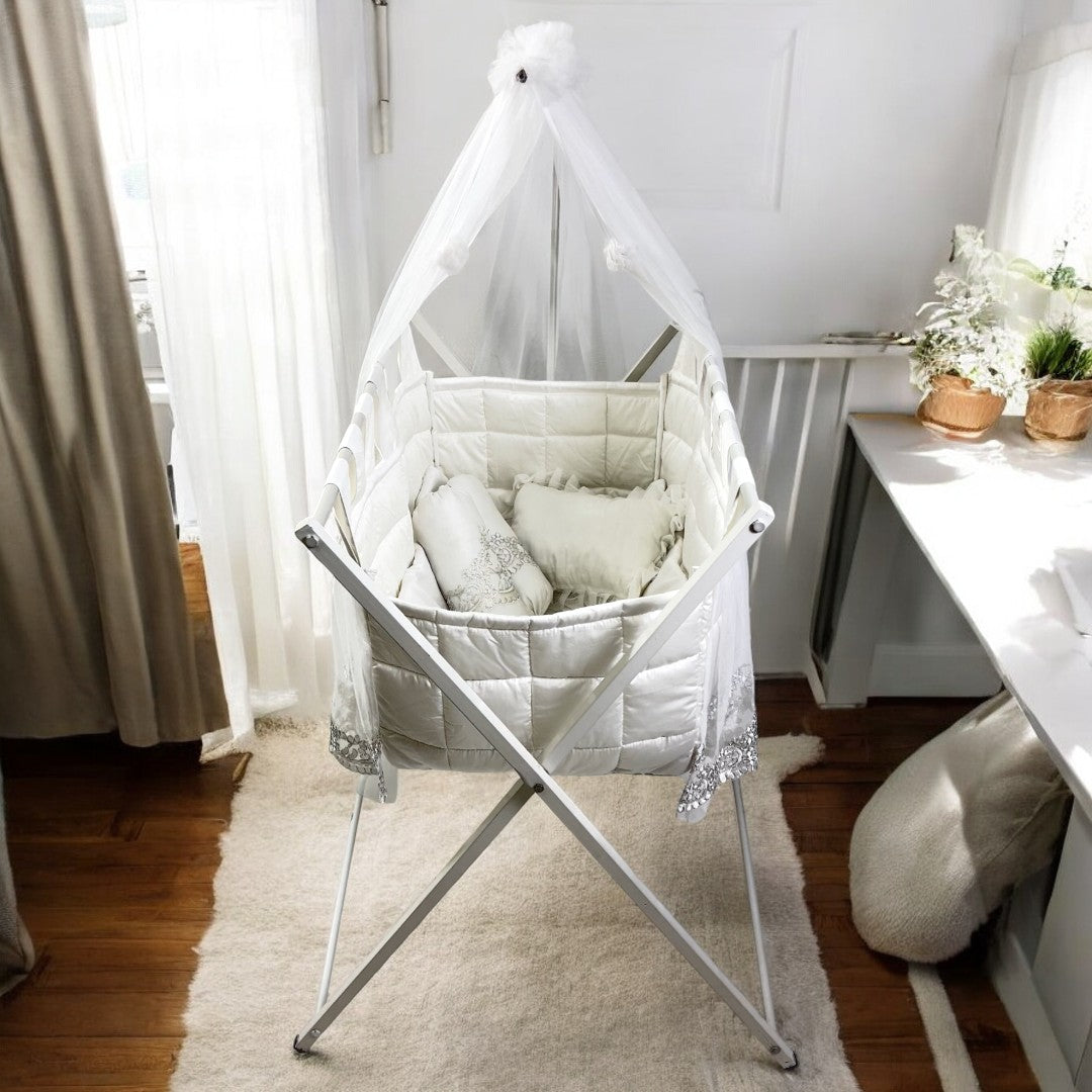This foldable baby crib bedding offers convenient storage and easy transport for busy parents. Constructed with high-quality materials, it provides a comfortable and secure place for your little one to rest. The foldable design allows for versatile use.