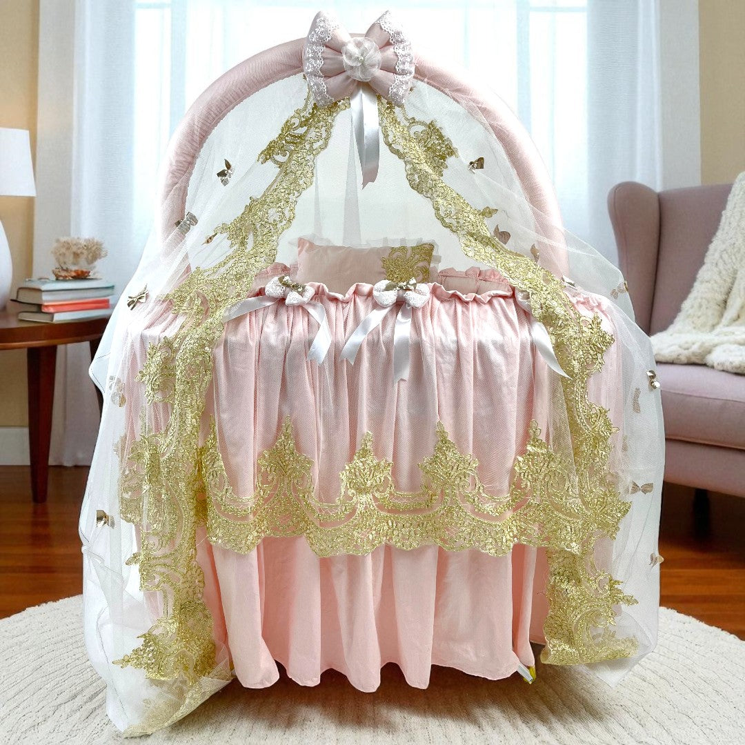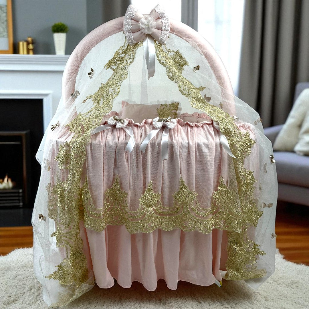 This baby sleeping carrier is designed specifically for newborns, featuring a delicate fairy tale-inspired curtain that surrounds the carrier. It provides a cozy, secure environment that helps soothe your baby to sleep while protecting them from light and distractions. Crafted with care, it supports safe and comfortable rest for your little one during naps or outings.