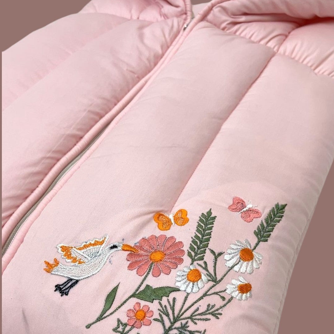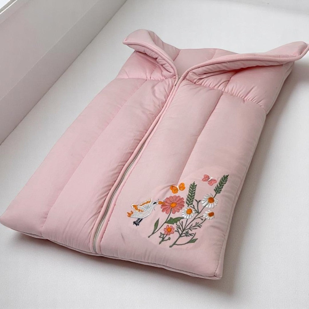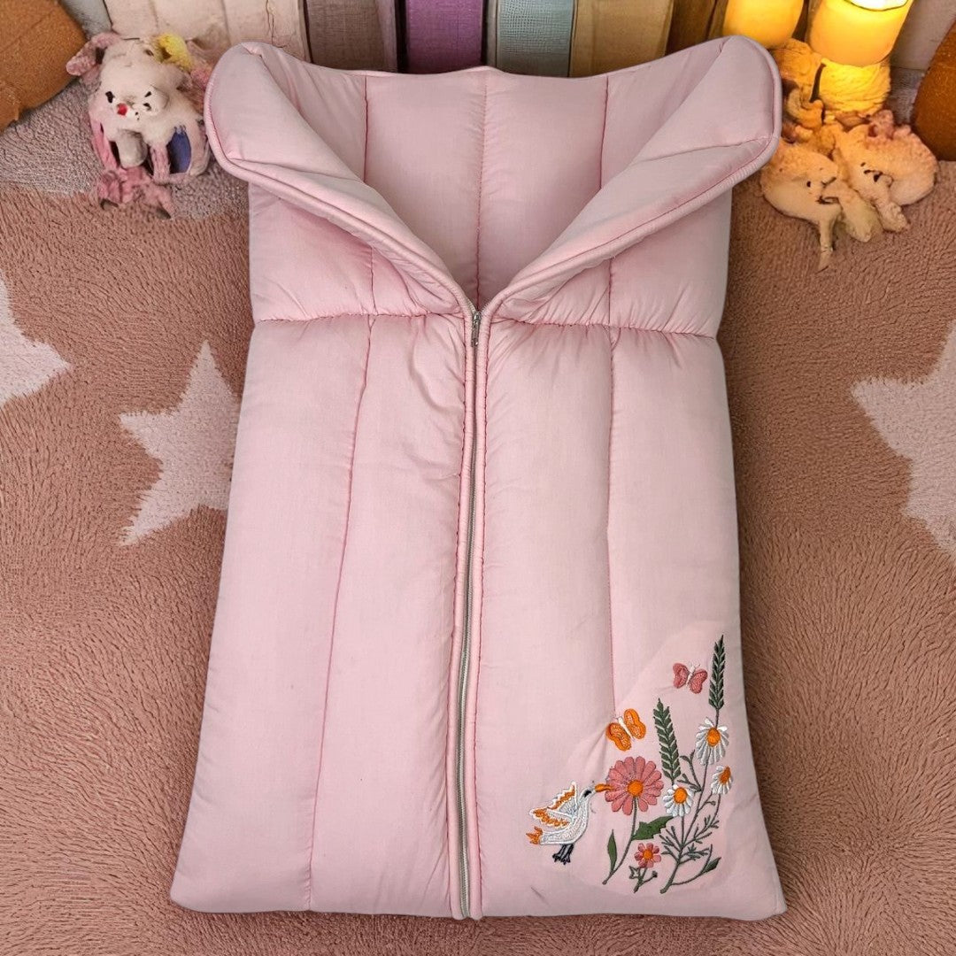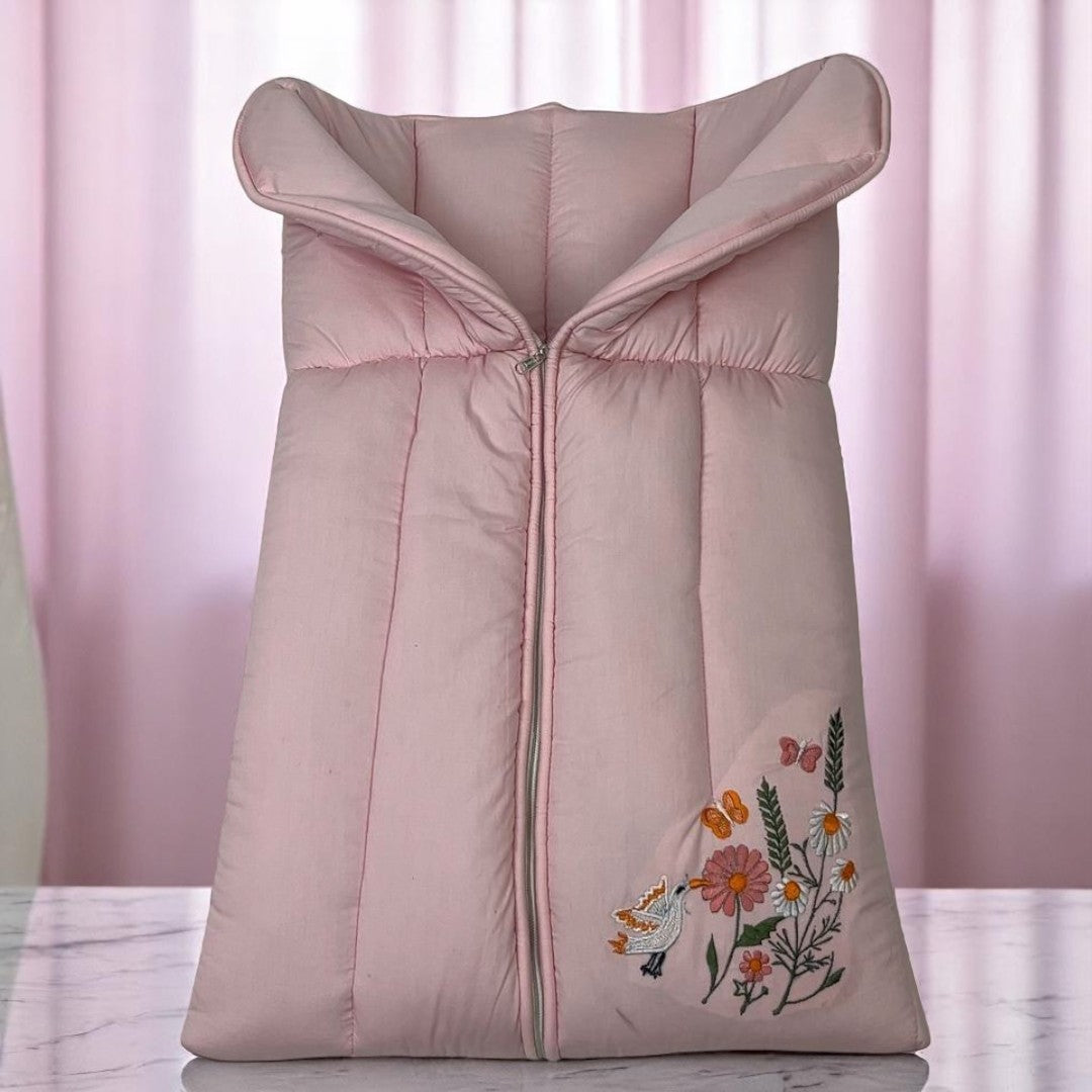 Expertly designed for newborns, the Carry Pocket Nest provides the perfect space for babies to rest comfortably. With a convenient zipper and delicate embroidery, this nest is suitable for infants from 0 to 4 months. Keep your little one snug and secure with this essential product.